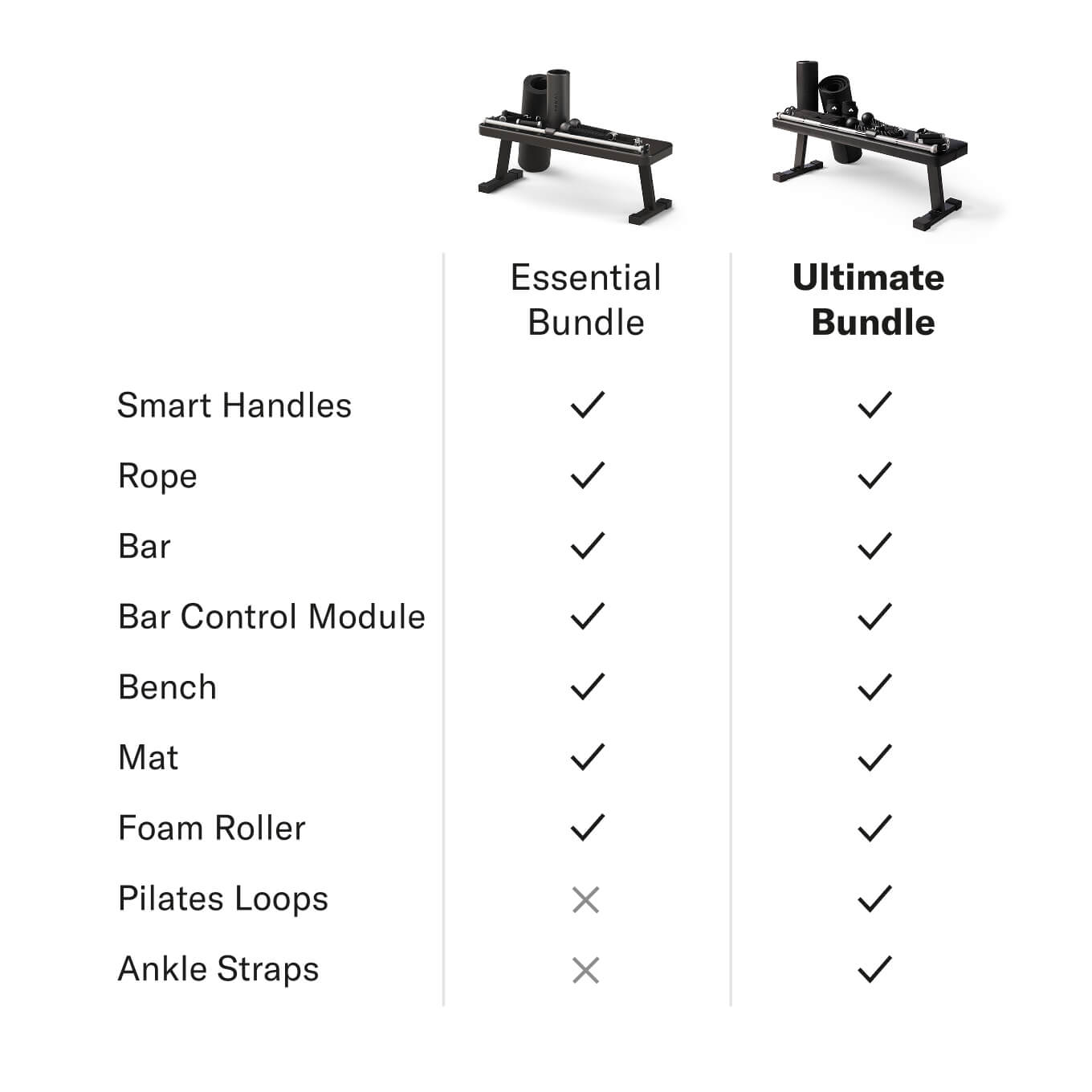 Required for Pilates loops and ankle strap movements — and 320+ exercises across upper, lower, and core
